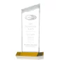 Le magnifique prix Oakwood présente un effet de cascade profondément sculpté qui dévale sur le dessus de la pièce. Avec une base avant en ambre éblouissante, cet award est le moyen parfait d'encadrer vos mots de reconnaissance. 4,0" L x 10,0" H