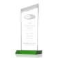 Le magnifique prix Oakwood présente un effet de cascade profondément sculpté qui dévale sur le dessus de la pièce. Avec une base avant verte éblouissante en onglet, ce prix est le moyen parfait d'encadrer vos mots de reconnaissance. 4,0" L x 10,0" H