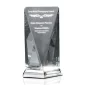 Les coupes en cristal optique du Rubicon Award sont fixées sur des bords étroits, offrant des réflexions lumineuses frappantes à ce prix moderne. Le cristal est monté sur une base en métal fini nickel brossé sur le dessus d'un miroir, reflétant une lumière spectrale étincelante à l'intérieur. 6,0" L x 10,5" H x 2,5" P
