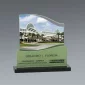 Ces pièces de destination distinctives sont parfaites pour reconnaître les conférences d'entreprise, les sommets ou les excursions. Chaque récompense est composée de verre avec une base en granit noir et est mise en valeur par des paysages urbains en couleur de monuments remarquables. Choisissez parmi 8 paysages urbains en stock, dont Las Vegas, Toronto, New York City, Chicago, Orlando, San Francisco, Whistler et Calgary. 5" L x 5.125" H