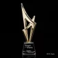 Des sculptures de triangles en métal coulé se croisent avec une finition brillante en or 24 carats ou en argent fin pour créer cette sculpture élégante et moderne d'une beauté de qualité galerie. Chaque pièce est montée sur une base en cristal optique biseauté. 13,25" H