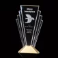 Le prix Valiant est formé de sept lances biseautées en cristal optique, assemblées à des angles dramatiques pour créer ce faisceau exquis de cristal rayonnant. La sculpture s'élance d'une base en métal coulé finie dans votre choix de métal plaqué or brossé ou argenté. 6,5" L x 12,0" H x 1,75" P