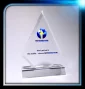 Prix en forme de pointe de flèche en acrylique avec une base de 4 1/2"x3/4"x1 3/4". 4 1/2" L x 6" H x 3/4" Épaisseur