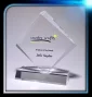 Prix en forme de diamant en acrylique avec une base de 4 1/2"x3/4"x1 3/4". 5 3/4" L x 5" H x 3/4" Épaisseur.