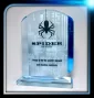 Prix en acrylique avec sommet arrondi et base de 6 1/2"x3/4"x1 3/4". 6" L x 8" H x 3/4" Épaisseur