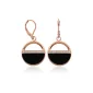 Boucles d'oreilles en acier inoxydable IP rose avec émail noir et disque ouvert en zircone cubique. Boîte cadeau incluse. Conforme à la proposition 65.