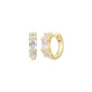 Boucle d'oreille huggie hoop ronde de 13 mm en zircone cubique Diamondlite émeraude et ronde en argent sterling avec placage or 18 carats. Boîte cadeau incluse. Conforme à la proposition 65.