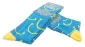 Chaussettes jacquard tricotées avec une empreinte tissée. Jusqu'à 6 couleurs d'impression disponibles. Hauteur mi-mollet. Ajoutez 1,00 $ (R) pour un emballage en bande ventrale ou en carte d'en-tête en couleur pleine.