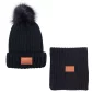 Chaque pièce est ornée d'un patch en similicuir PU mesurant environ 1,96" de large sur 1,18" de haut pour la décoration (sur le revers avant pour le bonnet, sur l'extrémité pour l'écharpe). Il y a une pochette de rangement transparente en EVA givré avec fermeture éclair contenant notre bonnet en tricot Leeman™ assorti avec un pompon en fausse fourrure sur le dessus, et une écharpe en tricot côtelé acrylique Leeman™. L'écharpe mesure 73,5" de long sur 8,25" de large, et le bonnet est de taille unique. L'impression n'est pas disponible sur la pochette en EVA. Conforme à la proposition 65.