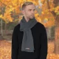 Cette écharpe est surdimensionnée et est faite de tricot côtelé épais et d'acrylique. 76" L x 8" W