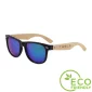 Lunettes de soleil en bambou avec logo laser sur chaque branche. Conforme à la proposition 65. 5,5" H x 5,5" L x 1,5" P.