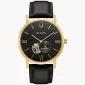 Boîtier en acier inoxydable avec cadran à ouverture ouverte et fond de boîte en exposition offrant un aperçu du mouvement automatique à 21 rubis avec une réserve de marche de 42 heures. Le cadran est doté d'aiguilles et de marqueurs en acier inoxydable, d'un sous-cadran de balayage, d'un bracelet en cuir et d'un cristal minéral plat. Résistance à l'eau jusqu'à 30 mètres et livré avec une garantie de 3 ans. Diamètre de 42 mm x largeur de 22 mm.