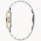Le boîtier rectangulaire raffiné en acier inoxydable bicolore présente un cadran texturé orné de chiffres arabes et d'aiguilles assorties. À 7 heures, une ouverture encadrée offre une vue sur le cœur battant de la montre, le mouvement mécanique à 21 rubis qui a une réserve de marche de 42 heures. Un bracelet assorti à cinq maillons est doté d'une fermeture déployante avec des poussoirs pour un ajustement parfait. Résistant à l'eau jusqu'à 30 mètres et livré avec une garantie de 3 ans. 33mm de largeur x 22mm de longueur.