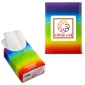 Ce paquet de mouchoirs en plastique PE de poche de taille avec un emballage en stock d'art arc-en-ciel en couleur complète dispose d'une fermeture à l'arrière refermable. Comprend dix mouchoirs en pâte vierge 3 plis (non rechargeables). Conforme à la proposition 65. 2,125" L x 3" H x 0,875" P