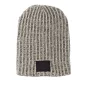 Voici la solution pour les cheveux en bataille, les matins d'hiver glaciaux et le marketing ennuyeux : notre bonnet en tricot Haberdasher avec un patch en cuir. Ce souvenir est quelque chose que les gens veulent vraiment porter et un article promotionnel idéal pour la foule des jeunes branchés. Personnalisez votre bonnet en choisissant l'une de nos options de couleur de cuir fabriquées aux États-Unis pour mettre en valeur votre logo. Bien que le cuir naturel varie légèrement en texture et en couleur, ce bonnet robuste restera frais saison après saison. Conforme à la proposition 65. 9" L x 12" H