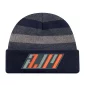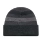 Il s'agit d'un bonnet à revers en tricot côtelé rayé.