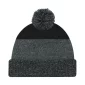 Bonnet à revers en acrylique (pompon de 8 cm) tricoté en côtes chinées.