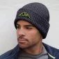 Bonnet à revers en acrylique tricoté en grosse maille gaufrée.