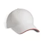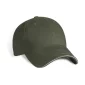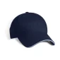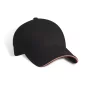 Cette casquette structurée en sergé de coton brossé lourd avec une visière double sandwich contrastante présente 6 sections, une coupe semi-basse doublée à l'avant, une visière pré-courbée, une sangle arrière ajustable assortie et un système PEB avec Velcro caché. Importée.