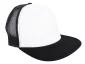 Casquette de camionneur en maille de mousse de poly blanc à 5 panneaux avec visière plate (bicolore)