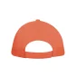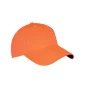 Casquette orange néon en 100% polyester avec structure souple en buckram, visière pré-courbée avec dessous noir pour un confort visuel, fermeture velcro en tissu assorti.