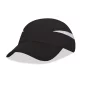 Casquette de course en polyester tissé gaufré à 100 % non structuré, cordon élastique et stoppeur à l'arrière.