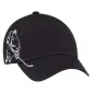 Cette casquette est à 6 panneaux, construite, a une coupe ajustée (sportive), et est fabriquée en polycoton. Elle présente une silhouette de joueur de hockey brodée sur le côté, des panneaux avant laminés en buckram avec Pro-stitch, une visière pré-courbée avec 8 rangées de coutures et arbore une sangle arrière en tissu avec fermeture Velcro.