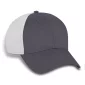 Cette casquette structurée est composée de 50% de sergé de coton de qualité supérieure/50% de polyester. Elle présente une double couche de maille sur les panneaux latéraux et arrière. Importée.