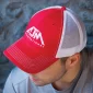Casquette en nylon souple avec coutures contrastées et dos en maille blanche.