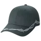 Cette casquette à 6 panneaux, structurée et profilée, est fabriquée en polycoton. Elle présente un motif de fil barbelé brodé sur le côté et la visière, des panneaux avant laminés assortis avec surpiqûres professionnelles, une visière pré-courbée et une sangle arrière en tissu auto-agrippant avec fermeture Velcro.