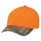 Il s'agit d'une casquette à 6 panneaux, de construction structurée, confectionnée en polycoton/polyester brossé avec un camouflage Realtree Xtra®. Elle présente des panneaux avant laminés en buckram avec couture Pro, une visière préformée avec 6 rangées de coutures et une sous-visière noire, ainsi qu'une sangle arrière en tissu auto-ajustable avec boucle à bascule perforée et œillet cousu.