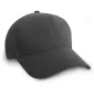 Casquette en sergé de coton brossé à 6 panneaux, visière pré-courbée, fermeture en velcro en tissu assorti. Disponible en noir et rouge pour les jeunes.