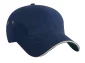 Buckram doux construit, sergé de coton brossé à 6 panneaux, visière pré-incurvée avec sandwich contrastant, œillets en métal, fermeture en tissu avec boucle et œillet, disponible en taille Jeunesse et Adulte. Les couleurs Pierre/Noir et Noir/Rouge sont disponibles dans les deux tailles.