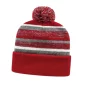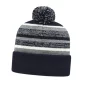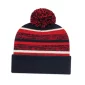 Fabriqué à 100% en tricot acrylique avec un pompon, doublé en polaire polyester avec des rayures alternées de fils multicolores et unis.
