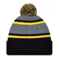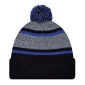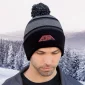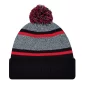 Bonnet à revers en acrylique (pompon de 8 cm) tricoté en côtes marbrées/rayées.