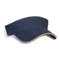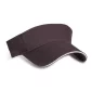 Ce visière en sergé de coton brossé lourd à profil bas est fabriqué à 100% en coton et présente une visière sandwich pré-courbée contrastante. Il est doté d'une sangle arrière assortie ajustable et d'une sangle arrière ajustable en velcro cachée. Importé.