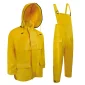 100% imperméable et coupe-vent. Nylon 420 deniers enduit de PVC. Les coutures sont doublement cousues et thermosoudées. Renforcé à tous les points de stress. La veste est dotée d'une large trappe de ventilation à l'arrière et de deux à l'avant, de deux grandes poches cargo à l'avant avec rabat en Velcro® et de poignets. La capuche se ferme par zip pour former une pochette de transport avec fermeture éclair en nylon. Trois boutons-pression inoxydables fixent la capuche à la veste et disposent d'un cordon de serrage. Le pantalon a deux grandes poches cargo et une fermeture Velcro®.