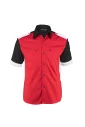Une chemise à boutons de qualité supérieure inspirée de l'équipe de mécaniciens de course, avec des poches zippées invisibles, des panneaux sous les bras pour une respirabilité accrue et des épaulettes.