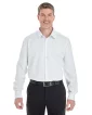 3,9 oz/yd² / 132 g/m², 60 % coton, 40 % polyester dobby avec performance anti-rides et anti-taches ; Performance anti-taches et véritable sans repassage directement sorti du sèche-linge ; Coupe ajustée ; Coutures thermocollées brevetées sans plis ; Col, poignets et patte spécialement fusionnés pour une performance totale du vêtement ; Col droit avec des baleines intégrées ; Col ajustable spécialement conçu pour un pouce de stretch supplémentaire ; Tissu de chemise à fils fins avec boutons nacrés ; Poignets ajustables avec patte de boutonnage ;