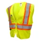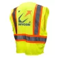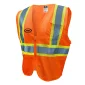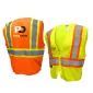 Gilet de sécurité certifié ANSI, de type R, de classe 2 avec bordure bicolore offrant une protection conforme à un prix économique. Excellent choix pour les environnements de travail extrêmes tels que le pavage d'asphalte qui réduisent considérablement la durée de vie utile d'un gilet, ou pour la protection des travailleurs à court terme. Les bandes réfléchissantes sur la bordure contrastante rendent les travailleurs beaucoup plus visibles par faible luminosité et en plein jour. Le gilet se ferme à l'avant par une fermeture éclair et est en polyester. Conforme aux normes ANSI, ISEA, Prop 65.