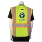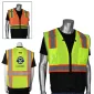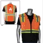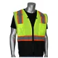 Maille de polyester respirante. Le fond noir en ripstop offre une protection contre les déchirures et aide à cacher la saleté. Ruban bicolore de 2 pouces pour une visibilité optimale. Bordure réfléchissante noire autour de l'ouverture des bras pour une visibilité et une sécurité accrues. Fermeture à glissière. Accès à l'anneau en D. Œillets au niveau du cou pour les porte-outils/longes. Passants pour micro avec coutures renforcées. Poche pour carte d'identité et poche pour radio/téléphone portable. 1 poche poitrine avec 4 porte-stylos. 2 poches à rabat inférieures. 2 poches intérieures inférieures. 1 poche intérieure inférieure pour stylo. ANSI 107, Type R Classe 2. 1" D x 25" L x 28" H.