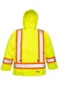 Matériau réfléchissant 3M Scotchlite™ de 2" avec une bande contrastante de 4" conforme à la configuration WCB/Worksafe/DOT. Polyester ripstop Trilobal 300 deniers robuste avec enduction PU offrant une résistance supérieure à l'abrasion, aux perforations, aux déchirures et aux accrocs, et doté de coutures doubles cousues, scellées et thermosoudées. 100 % imperméable et coupe-vent. Taille généreuse pour le confort et une ventilation supplémentaire. Ce vêtement n'est pas ignifuge. Conforme aux normes ANSI, CSA, ISEA.