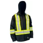 Pongee 100% polyester. Rembourrage 5 oz 100% polyester. Doublure 100% polyester. 100% imperméable et coupe-vent. Coutures scellées. Fermeture éclair avant en plastique. Rabat tempête avant avec bouton-pression inoxydable. Capuche amovible avec bouton-pression inoxydable. Fermeture des poignets par bouton-pression inoxydable. Deux poches latérales. Deux poches intérieures. Deux poches poitrine. Fil de haute résistance. Renforcé à tous les points de tension. -10°C Deux bandes réfléchissantes verticales à l'avant. Deux bandes réfléchissantes à l'arrière formant un "X", à la taille et sur chaque bras. Conforme aux normes ANSI, ISEA.