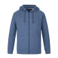 Tissu éponge français brossé 60% coton / 40% polyester (240 g/m²). Poche kangourou dissimulée avec fermeture à boucle et à crochet. Cordon de serrage ajustable dans la capuche. Poignets et ourlet en tissu double épaisseur. Fermeture éclair YKK.