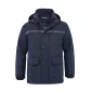 Veste extérieure : 275 g/m² - 8,1 oz/yd² - 13,5 oz/yard linéaire en polyester oxford 100 % avec une imperméabilité de 3000 mm, une respirabilité de 3000 g/m², finition résistante au vent et déperlante à l'eau. Veste intérieure : 68 g/m² - 2 oz/yd² - 3,5 oz/yard linéaire en taffetas de polyester 100 % avec finition résistante au vent et déperlante à l'eau. Isolation : 180 g/m² en polyester 100 %. Veste extérieure entièrement scellée avec un revêtement imperméable et respirant. Capuche trois pièces amovible à boutons-pression avec cordon de serrage réglable. Bande réfléchissante à l'avant et à l'arrière.