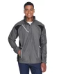 3,5 oz, 100% polyester entièrement scellé, imperméable et respirant à deux couches; doublure en micro-maille teinte assortie de 3,2 oz, 100% polyester; indice d'imperméabilité de 6 000 mm et respirabilité de 6 000 g; capuche à trois pièces escamotable avec visière de 1?"; fermeture à glissière imperméable à l'avant et aux poches avec tirettes en caoutchouc semi-automatiques; panneaux latéraux contrastés noirs; bande réfléchissante sur la poitrine droite et les poches avant; fermetures à crochets et boucles aux poignets; ourlet arrière allongé et cordon de serrage élastique.